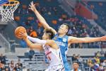 1月23日,青島隊球員蘇偉(后)在比賽中封蓋對手上籃。當日,在2017—2018賽季中國男子籃球職業(yè)聯(lián)賽(CB……