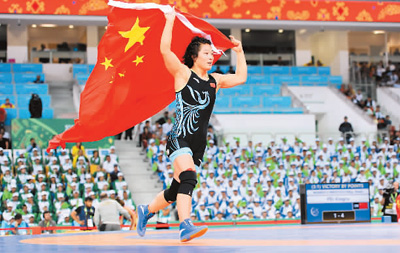 室內(nèi)與武道運(yùn)動(dòng)會(huì)裴星茹奪自由式摔跤金牌