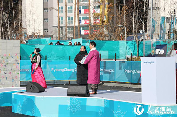 儀式現(xiàn)場(chǎng),平昌冬奧會(huì)奧運(yùn)村村長(zhǎng)金基勛對(duì)中國(guó)代表團(tuán)表示歡迎,希望中國(guó)健兒能在這里居住愉快,并取得好成績(jī)。隨后雙方交換禮品,金基勛向中國(guó)代表團(tuán)贈(zèng)送奧運(yùn)火炬及吉祥物,茍仲文則送給金基勛青花瓷盤(pán)。伴隨著雄壯的《中華人民共和國(guó)國(guó)歌》,鮮艷的五星紅旗冉冉升起,中國(guó)代表團(tuán)的平昌冬奧會(huì)之旅正式開(kāi)啟!