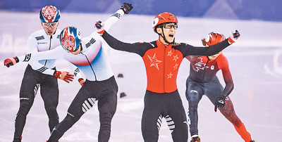 “我的成績(jī)是在前輩們的不懈努力之下取得的,感謝團(tuán)隊(duì)一直幫助我們,感謝家人的鼓勵(lì)陪伴,感謝所有支持中國隊(duì)的人!蔽浯缶冈谫惡髮Z金的功勞送給了所有中國短道人,是團(tuán)隊(duì)的支持給了他沖上最高領(lǐng)獎(jiǎng)臺(tái)的力量和信心。
