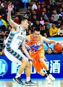 盧偉(右)在第四節(jié)連續(xù)命中三分,幫助上海男籃鎖定勝局。 /Osports