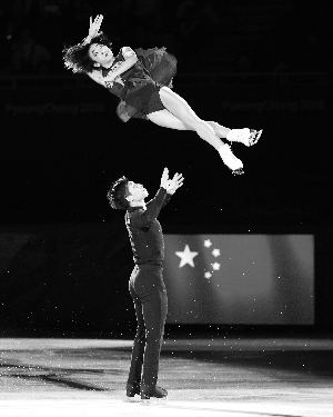 隋文靜(上)、韓聰在平昌冬奧會花樣滑冰答謝表演中。 中體在線 鹿麟攝(資料圖)