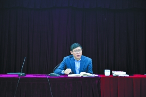 周進(jìn)強(qiáng)為國(guó)家舉重隊(duì)講黨課。