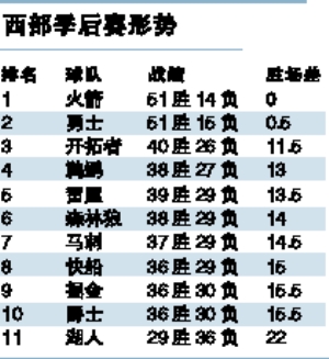 最尷尬的還是第二集團(tuán)的球隊(duì),他們原本的目標(biāo)都是爭三,目前季后賽席位又都受到了威脅。因此,西部季后賽席位和首輪對陣的懸念,很大程度上取決于這三支球隊(duì)接下來的表現(xiàn)。