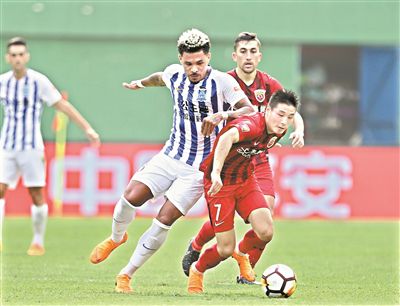 上賽季中超第28輪,廣州富力在上海上港主場(chǎng)以2比1擊敗對(duì)手,打破了上港的主場(chǎng)不敗“金身”。而在昨晚之前,富力在越秀山體育場(chǎng)已經(jīng)跨賽季10輪不敗,9勝1平。結(jié)果,富力的主場(chǎng)不敗“金身”也終結(jié)在上港手中。就像上賽季兩隊(duì)在越秀山體育場(chǎng)的那場(chǎng)沖突,你來(lái)我往,彼此都討不到便宜。