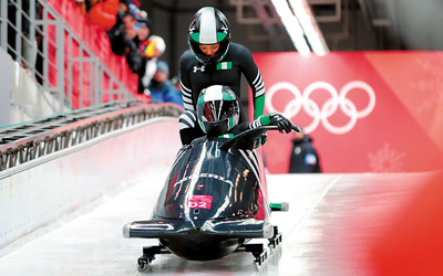 | 尼日利亞選手阿迪貢/奧米歐加在平昌冬奧會(huì)雪車比賽中。 |