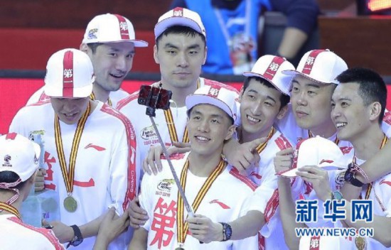 ↑遼寧隊球員在頒獎儀式上自拍新華社記者王東震攝