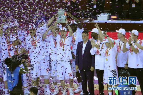 ↑遼寧隊球員在頒獎儀式上慶祝奪得總冠軍新華社記者王東震攝