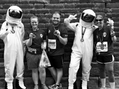 “今年改成抽簽,我們?nèi)揪臀乙粋(gè)中簽的,而且她給自己報(bào)名時(shí)也中簽了,當(dāng)時(shí)我就決定,完賽后向她求婚。我覺得這不僅是運(yùn)氣,是命中注定讓我在“城馬”的賽道上,記錄我們重要的時(shí)刻。”經(jīng)過片刻焦急的等待,閆梓奕終于等到完賽的女朋友,他忽然單膝下跪,并掏出鉆戒,向女朋友大聲喊出愛的宣言。一瞬間,周圍的跑友紛紛喊著“嫁給他”,來為依然緊張的閆梓奕打氣。最終,閆梓奕的女朋友接過花束、戴上鉆戒,開心地接受大家的掌聲,還有位跑者邊拍照邊說:“跑個(gè)馬拉松還被虐狗,太過分了! 王佳