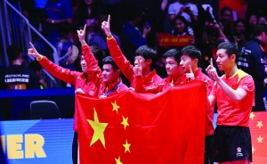 北京時間5月6日晚,2018年團體世乒賽在瑞典哈爾姆斯塔德落下帷幕。在壓軸上演的男團決賽中,由馬龍、樊振東和許昕出戰(zhàn)的中國男隊以3:0橫掃由波爾、菲魯斯和弗朗西斯卡出戰(zhàn)的德國隊,成就團體世乒賽史上首次九連冠。此前中國女乒曾經(jīng)兩次在沖擊九連冠時功虧一簣,這一次魔咒終于被中國男乒打破。