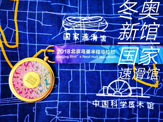 今天的賽事組織,平穩(wěn)有序,補(bǔ)給充足。獎(jiǎng)牌設(shè)計(jì)更是用心――除了有大大的2018字樣外,獎(jiǎng)牌正面的設(shè)計(jì)元素取自鳥(niǎo)巢俯視全景,每一個(gè)鋼結(jié)構(gòu)梁幻化成色彩紛呈的幻彩圖案,而背面是由十個(gè)同心圓組成,十個(gè)同心圓記錄十載歲月!