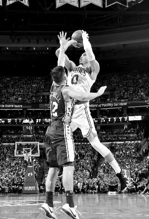 凱爾特人新秀塔特姆(右)在季后賽中表現驚艷。