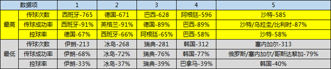 而在控球方面,崇尚傳控打法的球隊(duì)顯然會(huì)占據(jù)控球率的前列,但控球不等于贏球,將“Tika-Taka”玩的最熟練的顯然是西班牙,他們不僅有著場(chǎng)均765次的驚人傳球次數(shù)以及場(chǎng)均91%的傳球成功率,并依靠著前鋒迭戈-科斯塔的優(yōu)秀發(fā)揮,以小組第一順利出線;而與此形成鮮明對(duì)比的是一向以簡(jiǎn)單、高效打法著稱的德國(guó)隊(duì),居然也開(kāi)始走上了“Tika-Taka”的路線,3場(chǎng)小組賽,德國(guó)擁有32支球隊(duì)最高的控球率67%(比西班牙的66%還高),同時(shí)居然也擁有場(chǎng)均671次的傳球次數(shù)和89%的傳球成功率,但遺憾的是勒夫的“無(wú)鋒”戰(zhàn)術(shù),讓進(jìn)攻的最后關(guān)頭啞了火。r9T安康新聞網(wǎng)