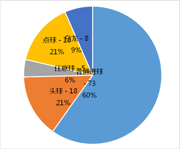 本屆世界杯關(guān)于進(jìn)球的另一個(gè)感受就是點(diǎn)球的增加,由于VAR視頻助理裁判技術(shù)的引入,本屆世界杯小組賽共打進(jìn)了18粒點(diǎn)球,而任意球直接破門也有5粒,均超過(guò)了上屆世界杯;而從進(jìn)球方式來(lái)看,定位球(直接任意球和點(diǎn)球)的直接破門共有23粒,依靠定位球(任意球和角球)戰(zhàn)術(shù)打入的進(jìn)球有27粒,而依靠運(yùn)動(dòng)戰(zhàn)打入的進(jìn)球有72粒;r9T安康新聞網(wǎng)