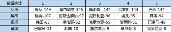 本屆世界杯小組賽的主要防守?cái)?shù)據(jù)統(tǒng)計(jì)如下:r9T安康新聞網(wǎng)