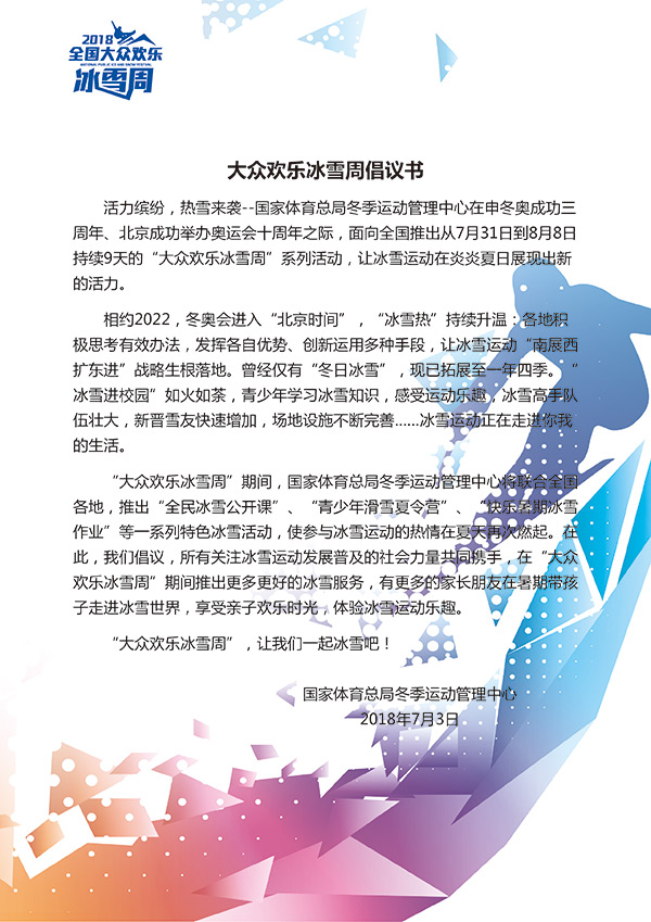 體育總局冬運中心大眾歡樂冰雪周倡議書