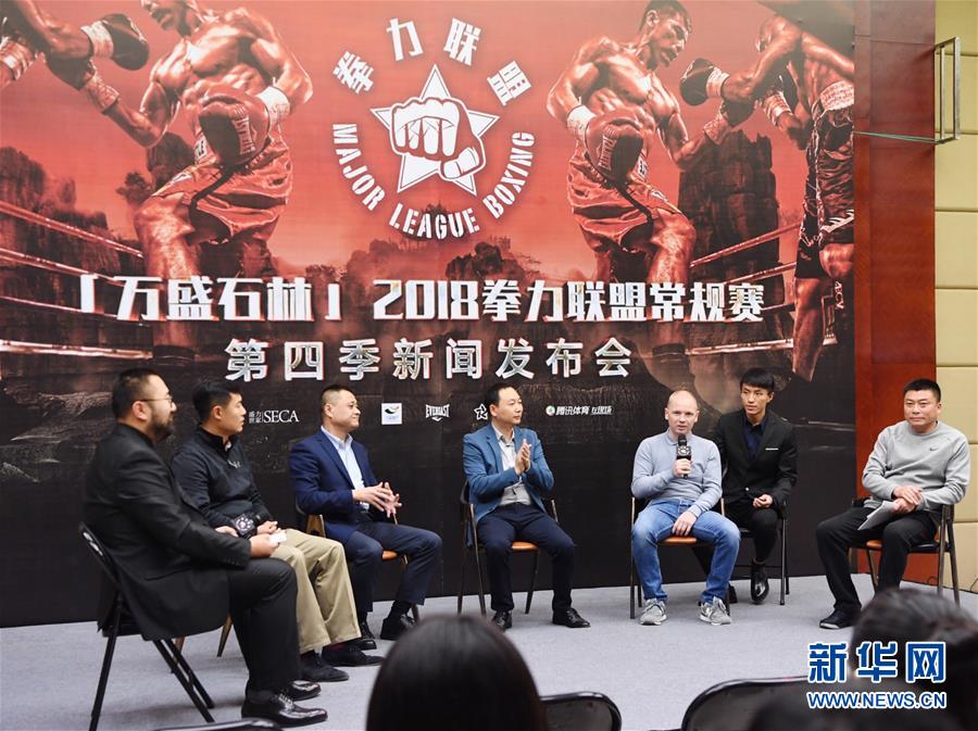 ↑11月16日,俄羅斯拳擊協(xié)會(huì)競(jìng)賽部部長(zhǎng)、兩屆奧運(yùn)會(huì)拳擊冠軍阿列克謝·季先科(右三)在新聞發(fā)布會(huì)上發(fā)言。 當(dāng)日,中國重慶2018拳力聯(lián)盟常規(guī)賽第四季新聞發(fā)布會(huì)暨中國職業(yè)拳擊萬盛高峰論壇在重慶萬盛經(jīng)開區(qū)舉行。 新華社記者王全超攝