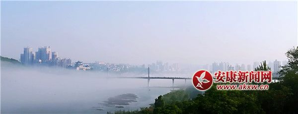 站在河岸,對面的山川若隱若現(xiàn),格外美麗。晨霧漸濃,三橋、博物館、房屋、建筑等瞬間被隱藏其中。遠處的村莊,如一張張完美的山水畫,在霧中游蕩。鑲嵌在霧中的城市,如海市蜃樓,美得令人窒息。伴隨著日出,天空漸藍,一縷陽光透過層霧把整座城市打扮的格外神秘。一位游客想極力挽留住這美麗的瞬間,站在岸邊,久久不愿離去。bSn安康新聞網
