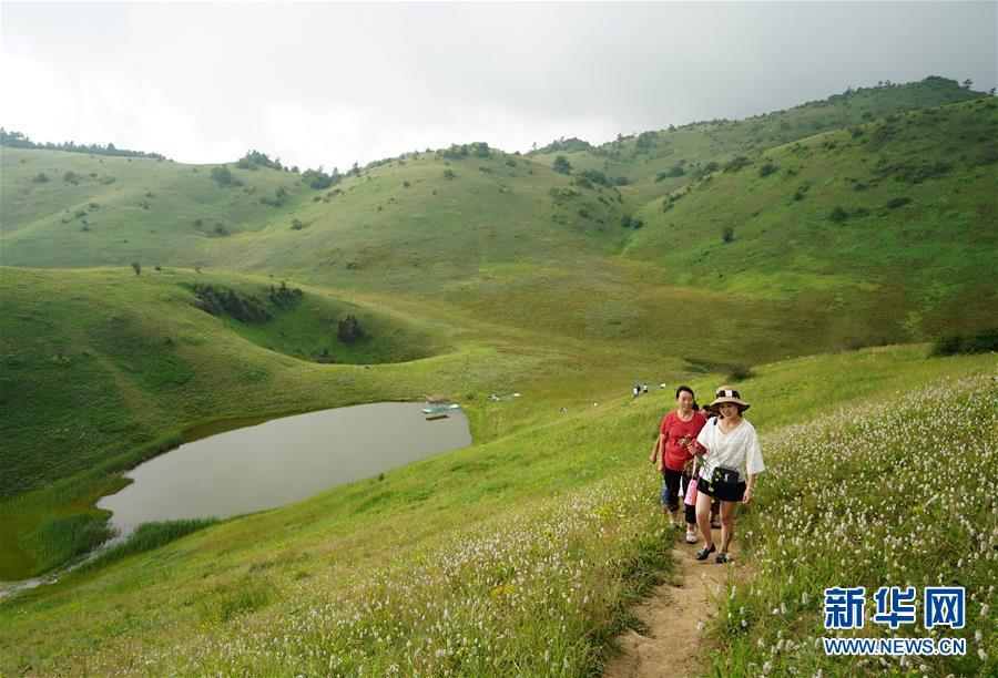 在陜西嵐皋縣與重慶城口縣交界處的大巴山主脊上,坐落著一片高山草甸——神田草原。入夏,這里碧草千頃,野花漫山,氣溫涼爽,云霧變幻,成為游客休閑避暑的好去處。 新華社記者 邵瑞攝bKn安康新聞網