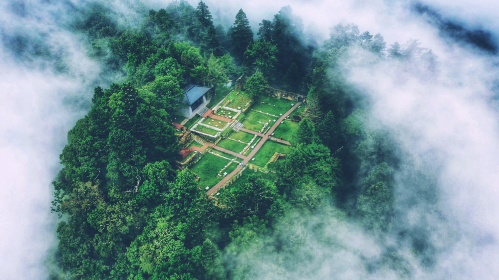 每次去羊山,總喜歡抬頭看云。藍天下朵朵白云浮在山巔,追著明月,輕盈自由,變幻莫測,讓人的心情也變得自在而愜意;秀遍g,分不清是云在山上,還是山在云中!