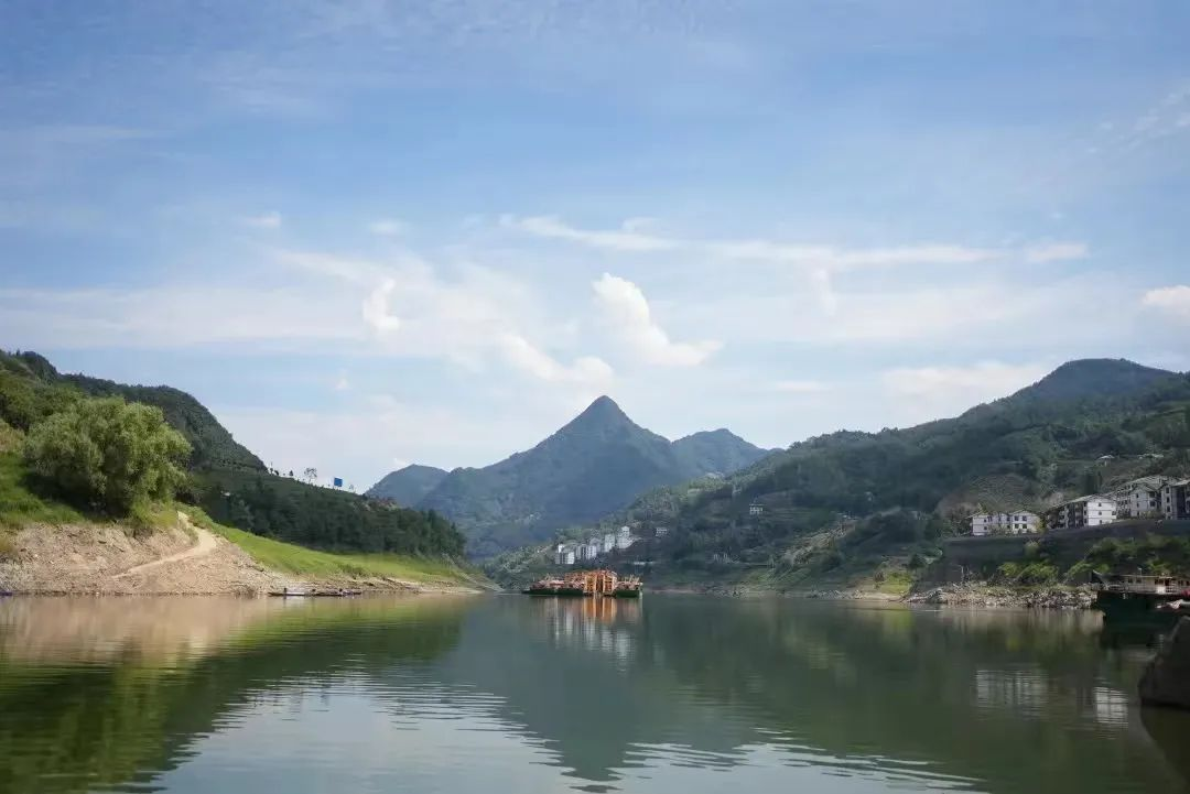 “清風(fēng)拂綠柳,白水映紅桃。舟行碧波上,人在畫中游!蓖蹙S的這首《周莊河》仿佛寫的就是石泉山水畫廊之景,蜿蜒的水路,碧綠的山川環(huán)繞,當(dāng)畫舫駛過(guò)江面,波紋……