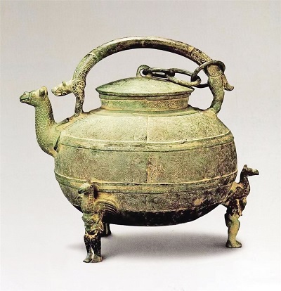 東漢許慎在《說(shuō)文解字》里有言:“盉,調(diào)味也。從皿,禾聲。” 王國(guó)維在《說(shuō)盉》中言:“余謂盉者,蓋和水于酒之器,所以節(jié)酒之厚薄也。”可見(jiàn)盉是古代酒器,是用來(lái)調(diào)和米酒,加水來(lái)沖兌酒味濃淡的。從考古發(fā)現(xiàn)看,多分布于山西、陜西、河南、江蘇、安徽等地,尤以江淮地區(qū)分布最多。西周中期以后,盉常與盤(pán)共出,說(shuō)明盉的功能有所轉(zhuǎn)變,從酒器變?yōu)樗鳎徽撟鳛榫破鬟是水器,“盉”與人們的日常生活總是密切相關(guān),它是“茶壺”的鼻祖,現(xiàn)代用的茶壺即是由它發(fā)展而來(lái)。