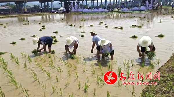 “立夏小滿插秧忙”。穿梭于稻田之間,書畫老師們盡情揮毫潑墨,把家鄉(xiāng)的情懷,融入了精美的扇面書畫之中。淳樸的孩子們把畫廊圍得水泄不通,看著他們紅撲撲的臉蛋、清澈靈氣的眼神,這就是稻鄉(xiāng)的孩子們。遠處,還有一群群穿著漢服的游客小朋友,在陽光下、稻田邊,顯得那么自信、靚麗。“誰知盤中餐、粒粒皆辛苦”!還有家長再給孩子們講著,要珍惜糧食、光盤行動……如今,曾經(jīng)辛勤的勞作,逐漸通過線上線下聯(lián)動、農(nóng)事體驗互動、文旅研學(xué)活動,早已成為了田園文化的商貿(mào)盛宴。“稻田拔河、稻田摸魚、稻田摔跤”等娛樂活動與田園懷舊音樂會融為一體,吸引眾多的游客。