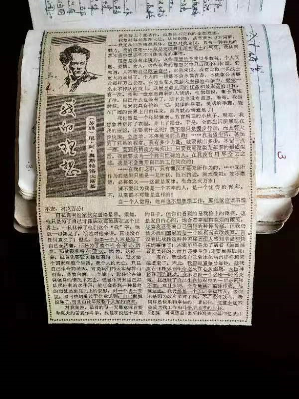 在新兵連我便開(kāi)始記學(xué)習(xí)筆記,剪貼報(bào)紙上的重要文獻(xiàn)。一次在蘭州軍區(qū)《人民軍隊(duì)報(bào)》看到(蘇聯(lián))尼·阿·奧斯特洛夫斯基《我的理想》,我一口氣看了好幾遍,并剪下來(lái)貼在日記本上,有空就翻著看,把經(jīng)典的部分標(biāo)注起來(lái)。這在當(dāng)時(shí)“人活著到底為了什么?”“年輕人有什么樣的理想?”“青春怎樣才能放射耀眼的光芒?”“什么是真正的幸福?”大討論中,無(wú)疑是最好的學(xué)習(xí)教材。