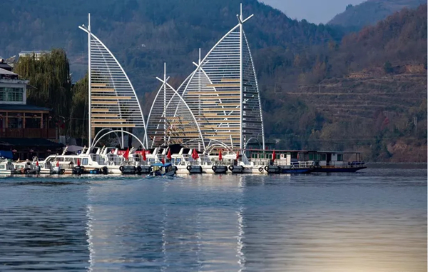 初到安康市漢濱區(qū)流水鎮(zhèn),放眼望去,青石鋪就的街道,頗具古風(fēng)的酒肆店面,令人耳目一新。緩步前行,步行百余步,及至碼頭,豁然開朗,碧水蜿蜒于青山之間,輕舟搖曳,漸行漸遠(yuǎn),不禁想起唐代詩(shī)人李白的那句“孤帆遠(yuǎn)影碧空盡,唯見長(zhǎng)江天際流”,飽具詩(shī)情畫意。