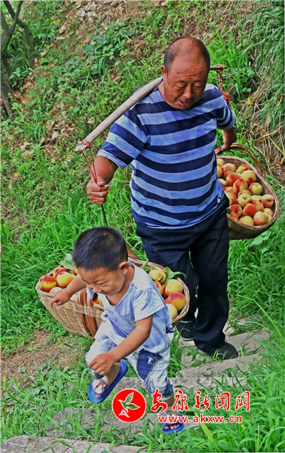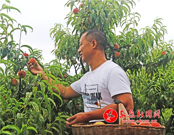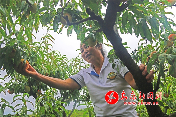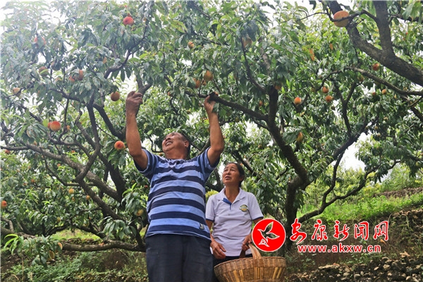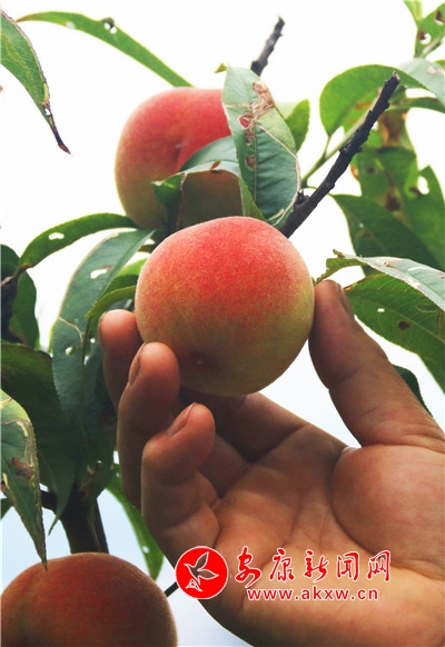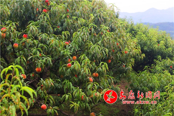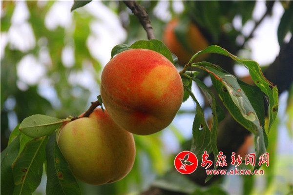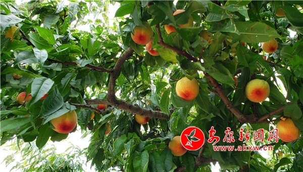 滿山架嶺的桃子,碩大圓潤(rùn),白中透粉,粉嫩透紅,密密匝匝掛滿枝頭,把樹(shù)枝都?jí)簭澚搜。在繁茂綠葉的包裹下,更顯其誘人。5iq安康新聞網(wǎng)