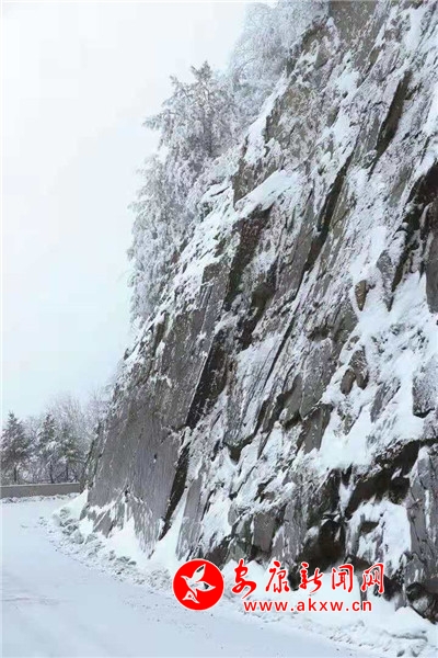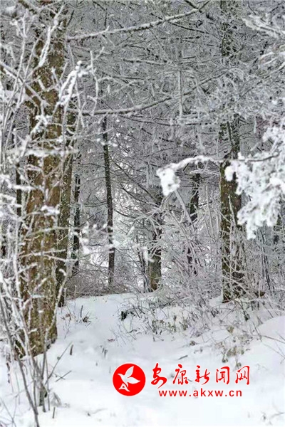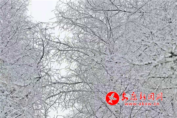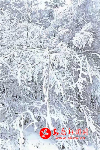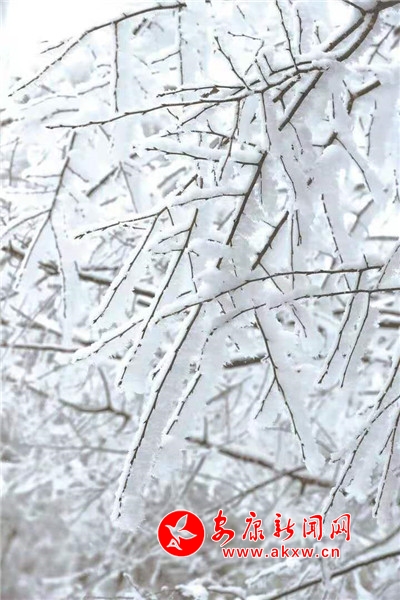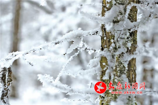 在青松的針葉尖上,在柔韌的枝條末梢,冰凌、霧凇、雪柳、樹掛……鋪天蓋地,肆意飛揚。憑欄遠(yuǎn)眺,萬千輕羽蔓延鋪陳,寒山枯色被這天地間的精靈喚醒?丈讲灰娙耍勓┞渎。
